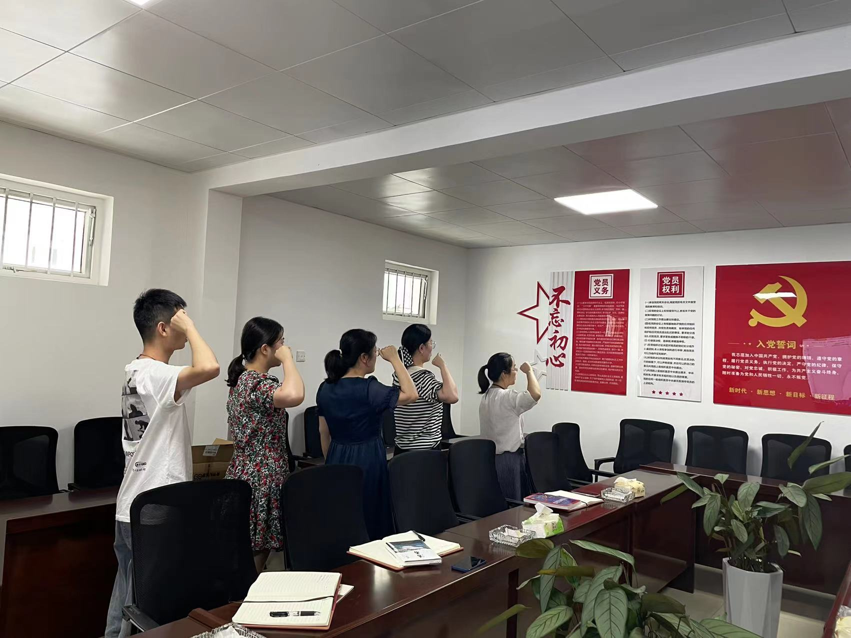 支部副书记魏陆陆宣读了集中过政治生日人员名单并为大家颁发书籍;;;;;;;;支委武丽丽带领机关党员面向党旗,,,,,,一起重温入党誓词。。。。。。。。通过此次活动,,,,,,大家坚定了理想信念,,,,,,增强了党性修养,,,,,,进一步提升了党员以身作则,,,,,,率先垂范的先锋队思想。。。。。。。。