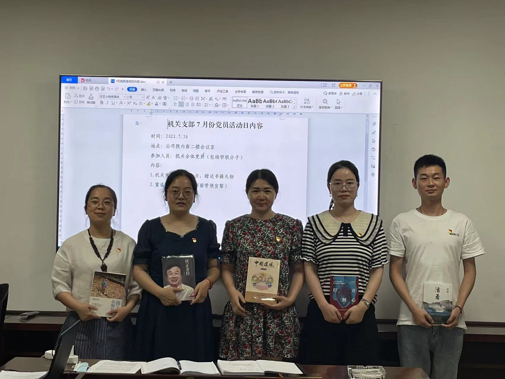 7月26日下午,,,,,,机关党支部在公司南二楼会议室开展党员活动日,,,,,,为全体党员过政治生日并赠送生日礼物书籍。。。。。。。。